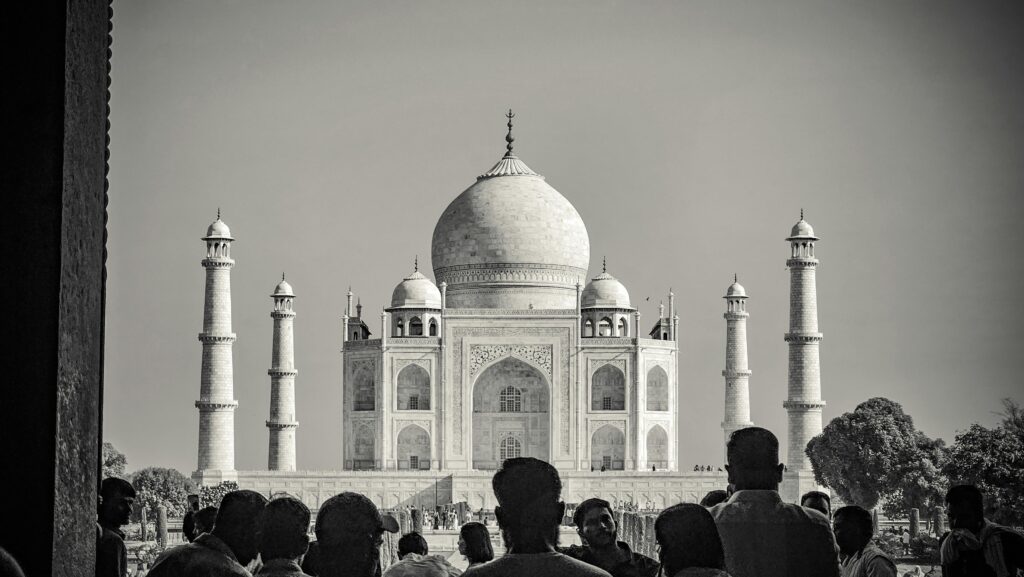 - Taj Mahal: the Taj Mahal ‘Crown of the Palace’ is an ivory white marble mausoleum on the bank of river Yamuna in the city of Agra. It was commissioned in 1632 by the mughal emperor Shah Jahan in the memory of his favorite wife Mumtaz. The monument is a centerpiece of 17 hectare (42 acre) complex which includes a mosque, a guest house and gardens bounded on three sides by walls.
